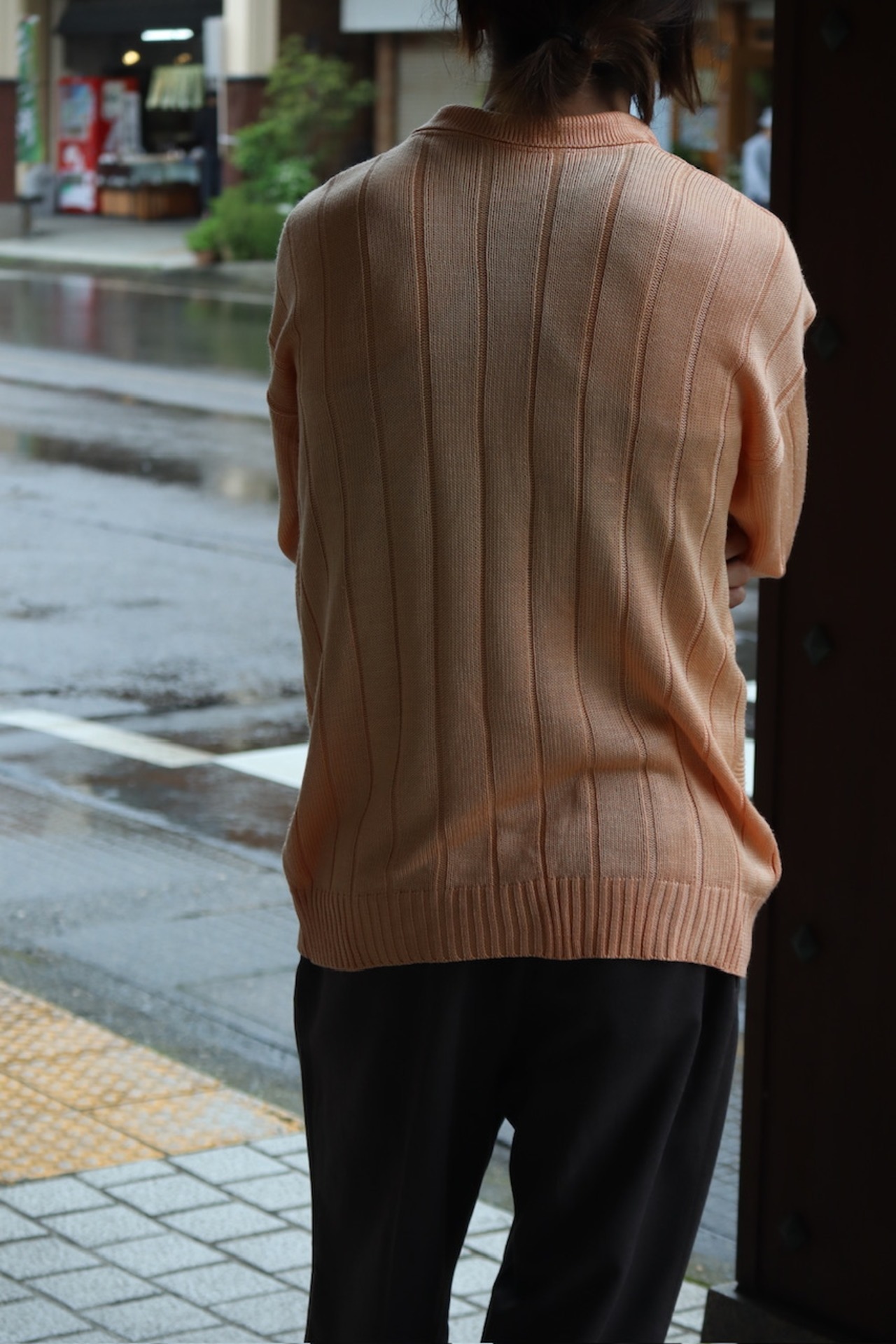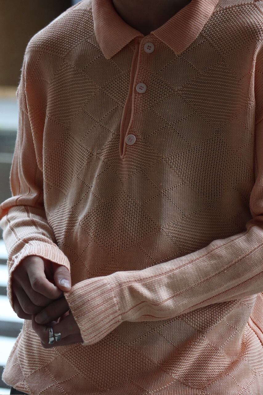 ボディとアームの編みの変化にジャストマッチなサーモンピンク