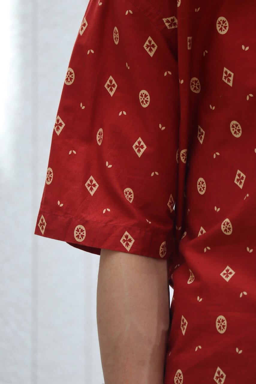朱色のボディにベージュの幾何学柄がなんともラルフらしい1着