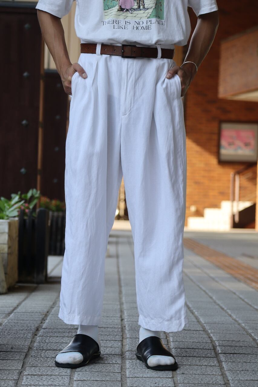 リネン、レーヨンの涼し気な生地感とワイドシルエットの楽さ