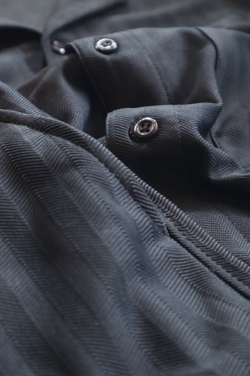 軽快なしなやかさと小綺麗な光沢の中に織りによって演出された柄が美しいセットアップ