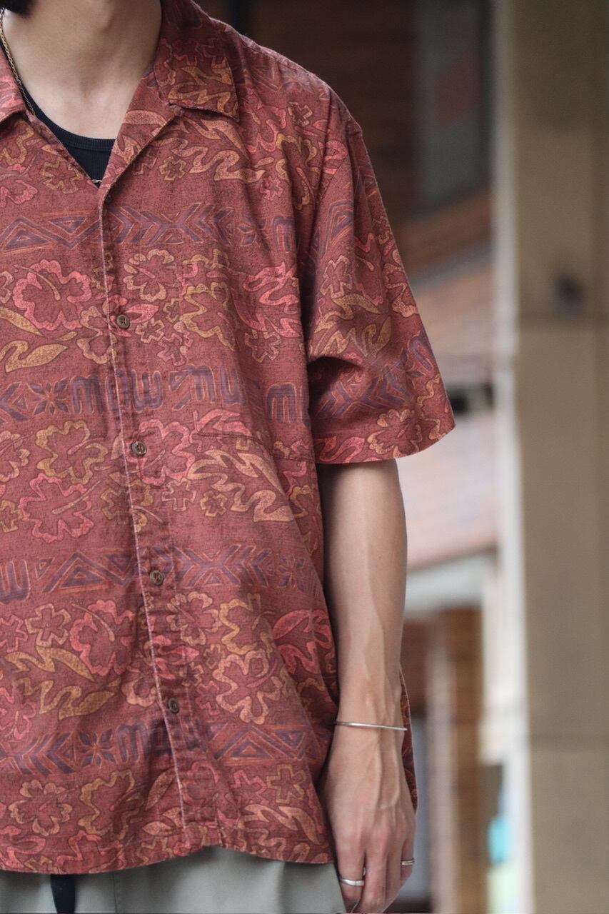 90's~ Patagonia cotton/linen all over pattern loop collar shirt