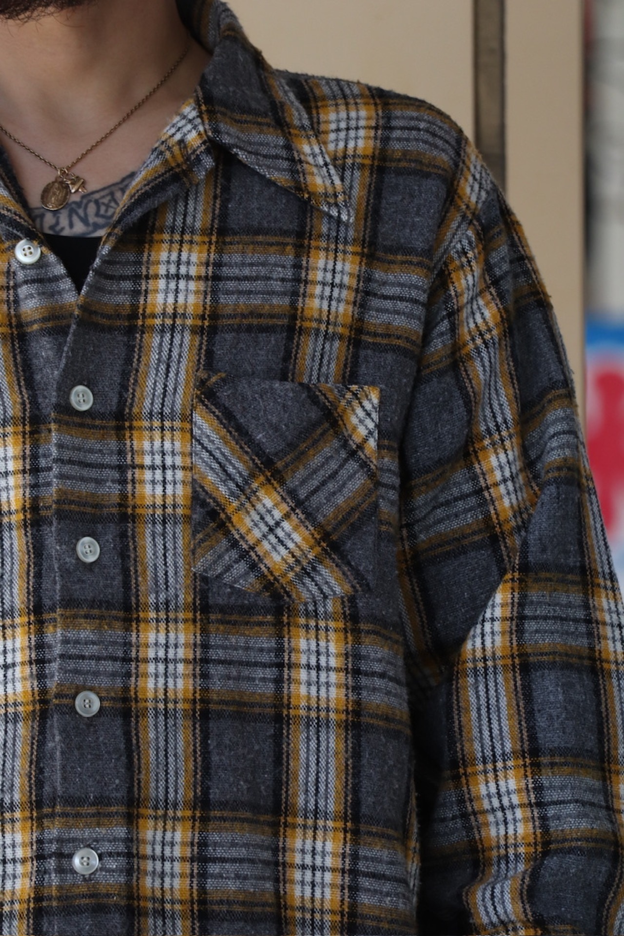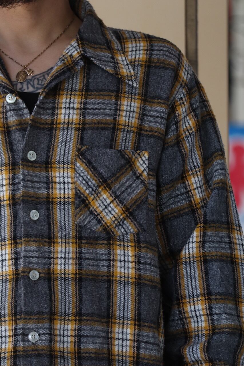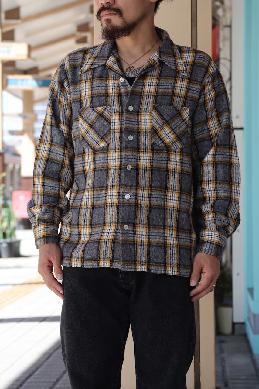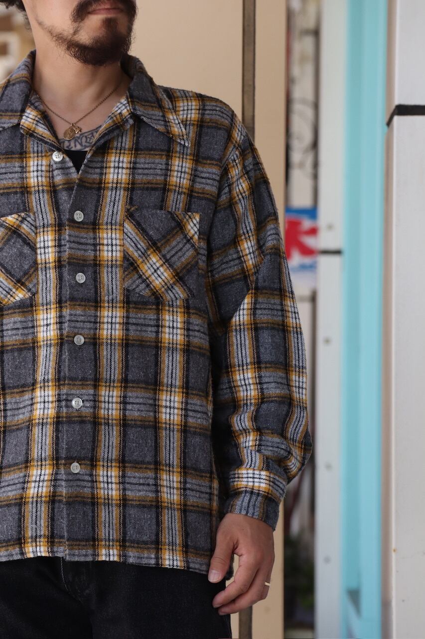 ~70's unknown plaid pattern wool open collar shirt