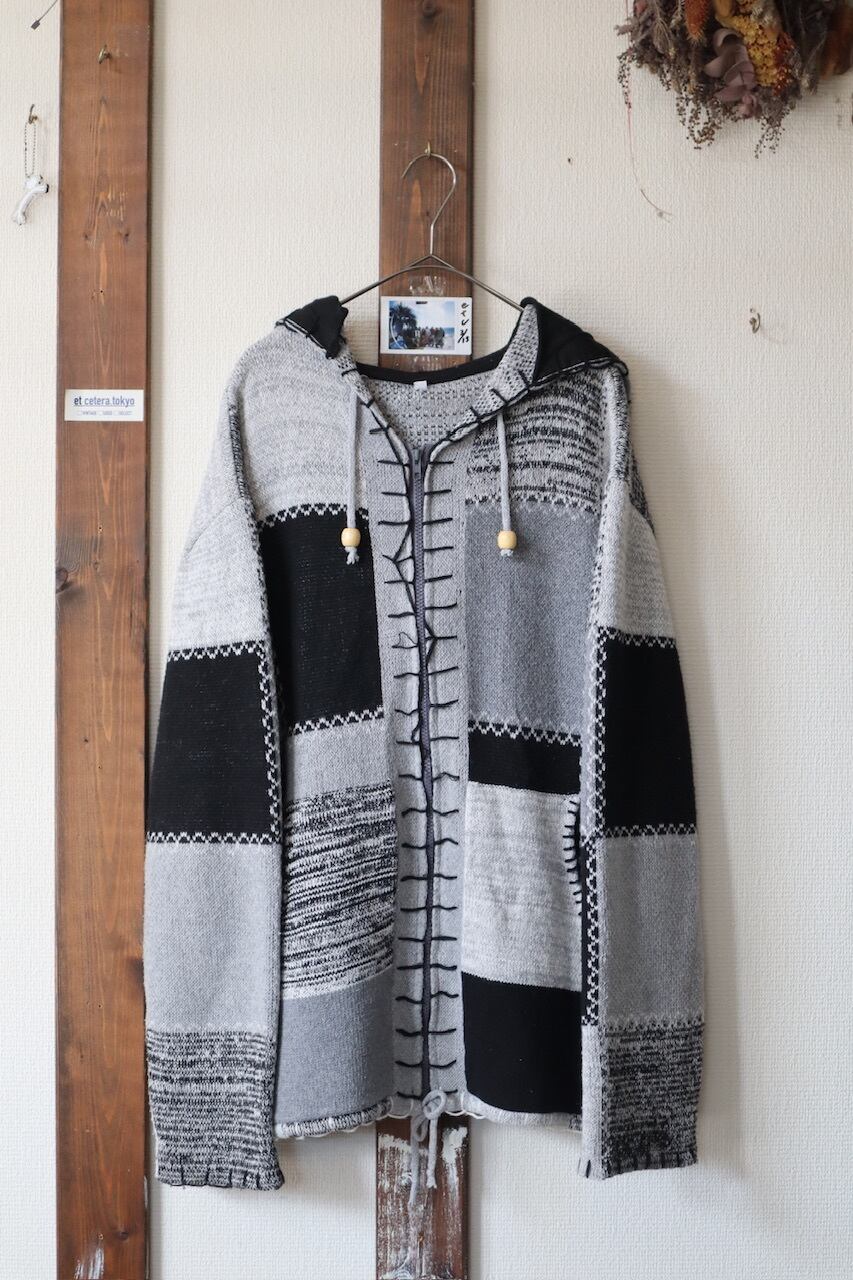 ニットフーディの中でもデザインに長けたパッチワーク調で派手に見えますがモノトーンがかなり着やすく