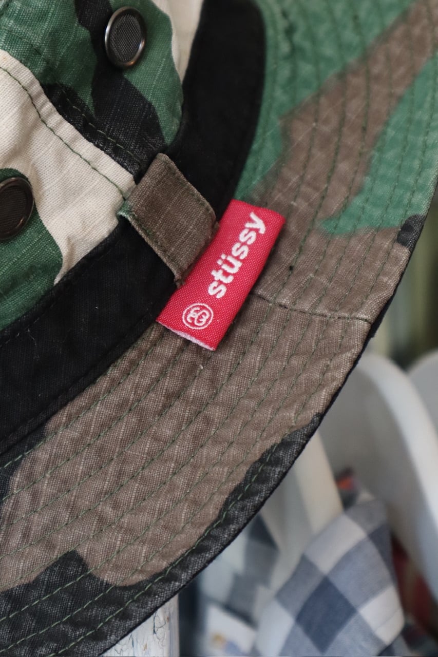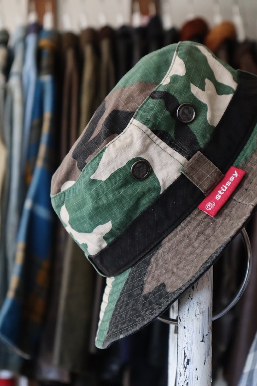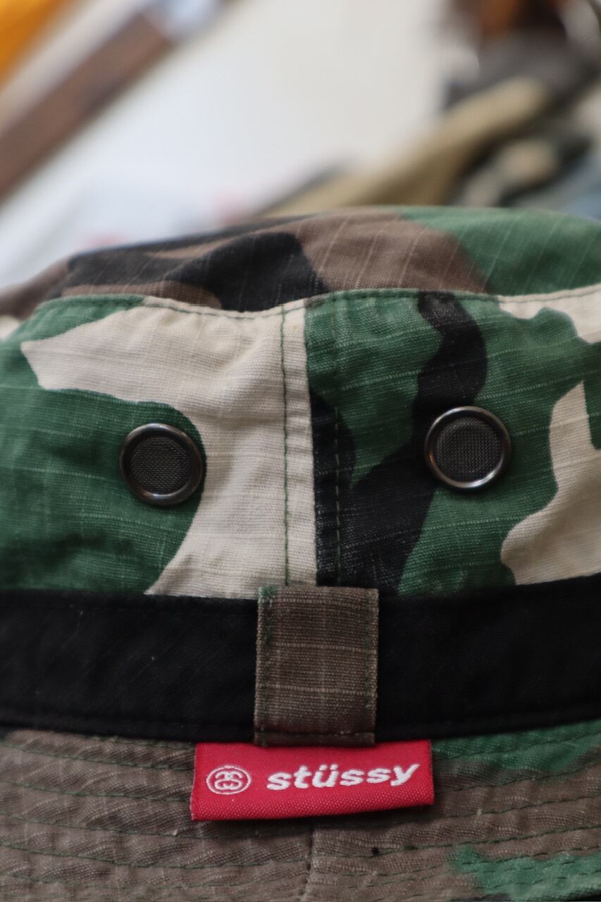 old STUSSY woodland camo ripstop bucket hat