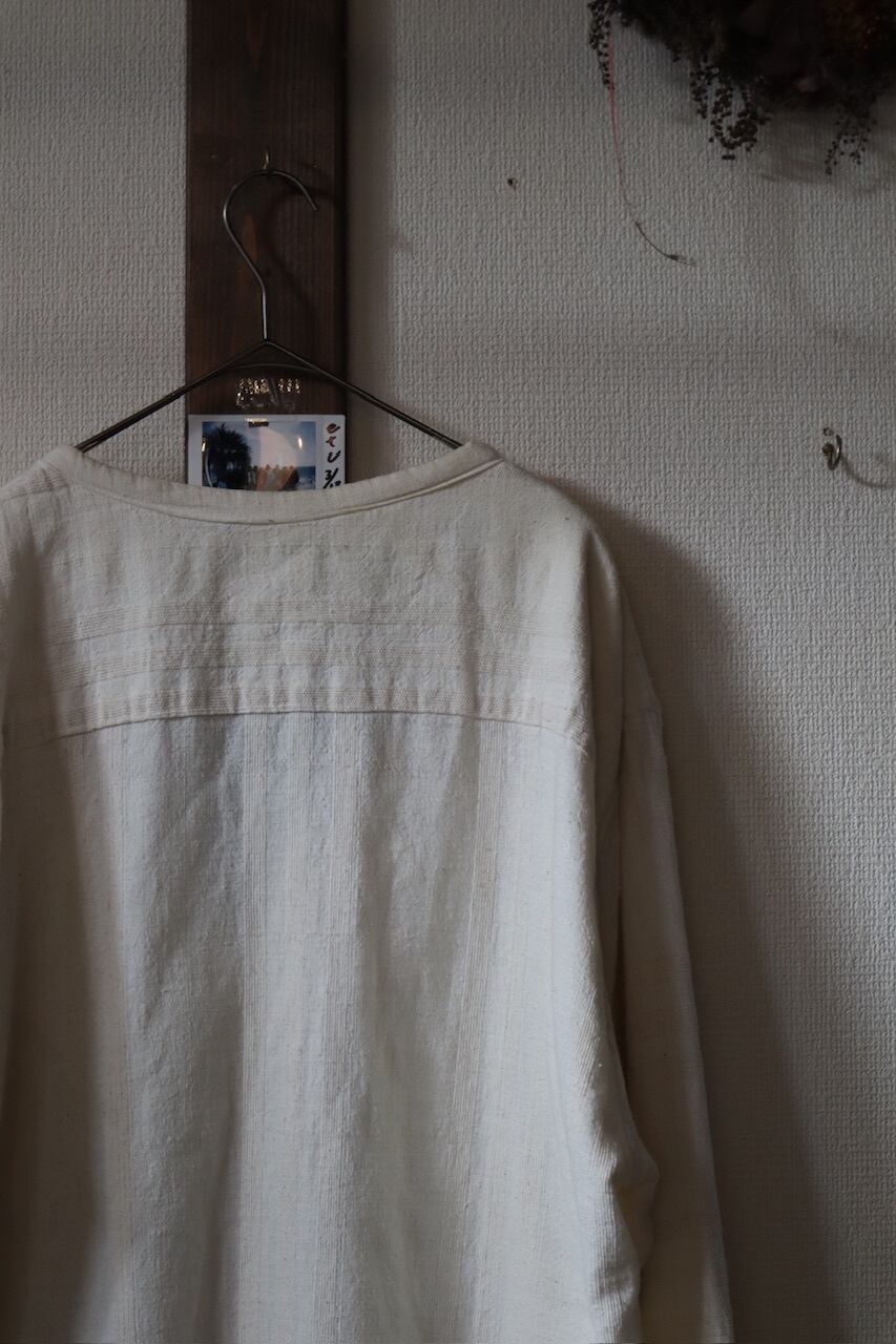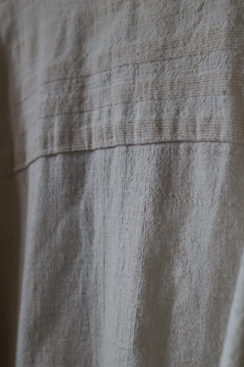 リネン混のようなファブリックがアイテムの雰囲気、着用時の玄人感を