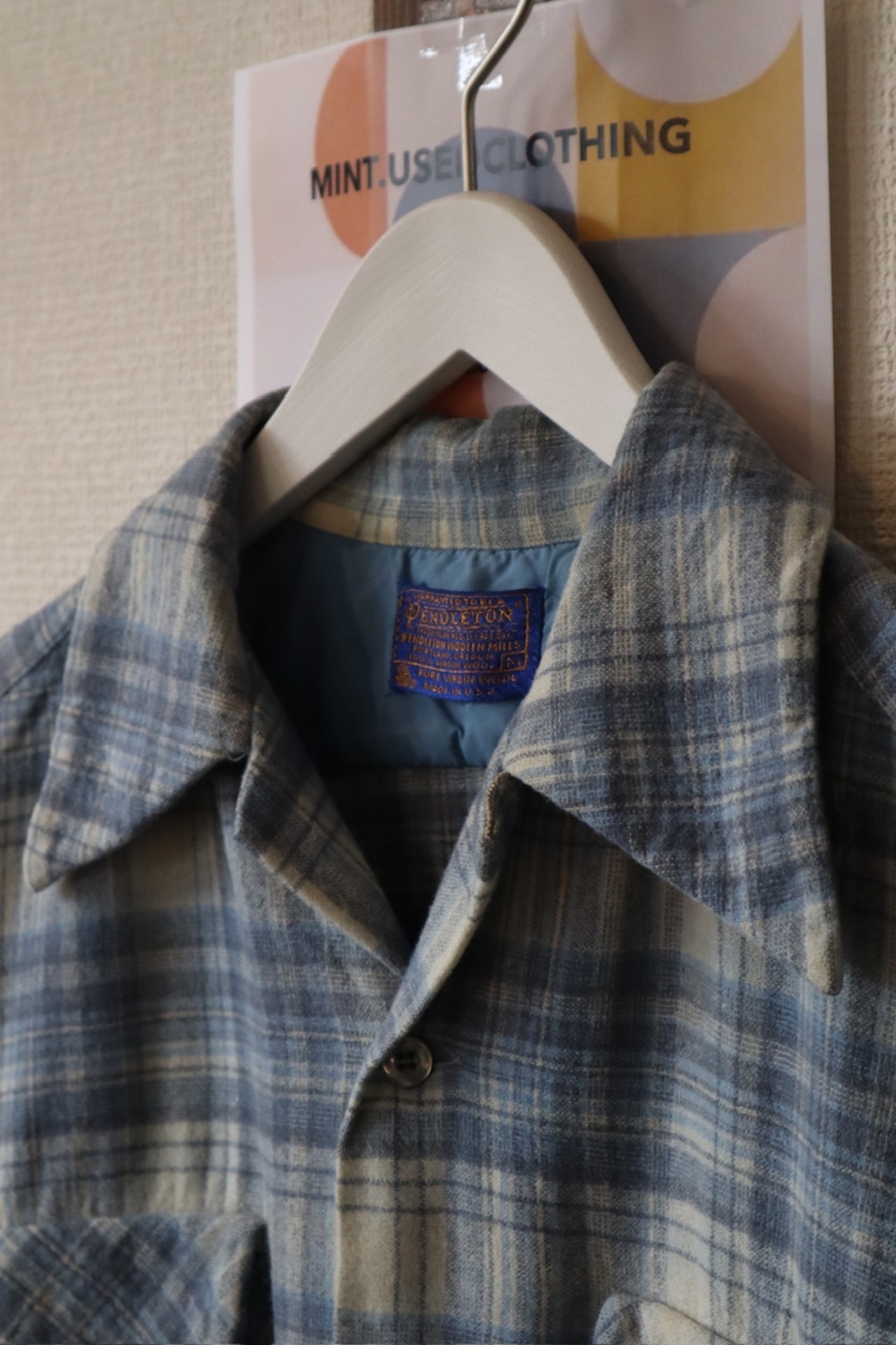 70's PENDLETON loop collar wool shirt "Rare color"
