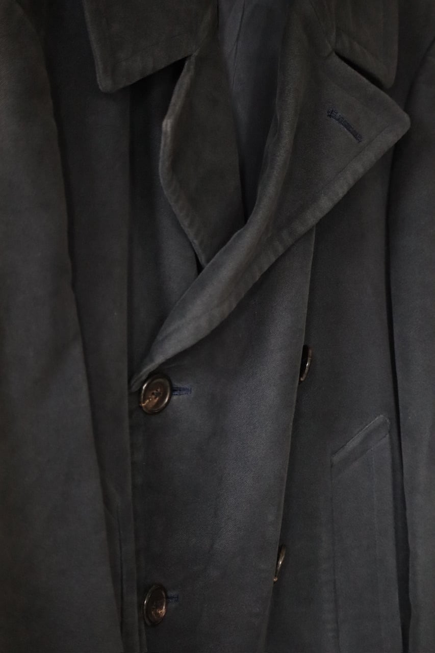 形はU.S.NAVYのPコートに寄せたラペル大きめのダブルブレストをハーフ丈に仕上げたスプリングコート