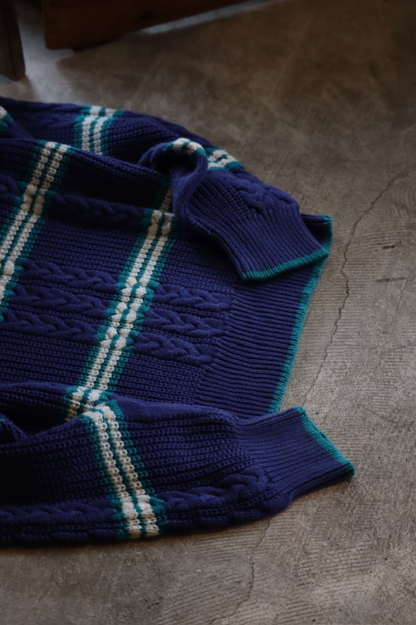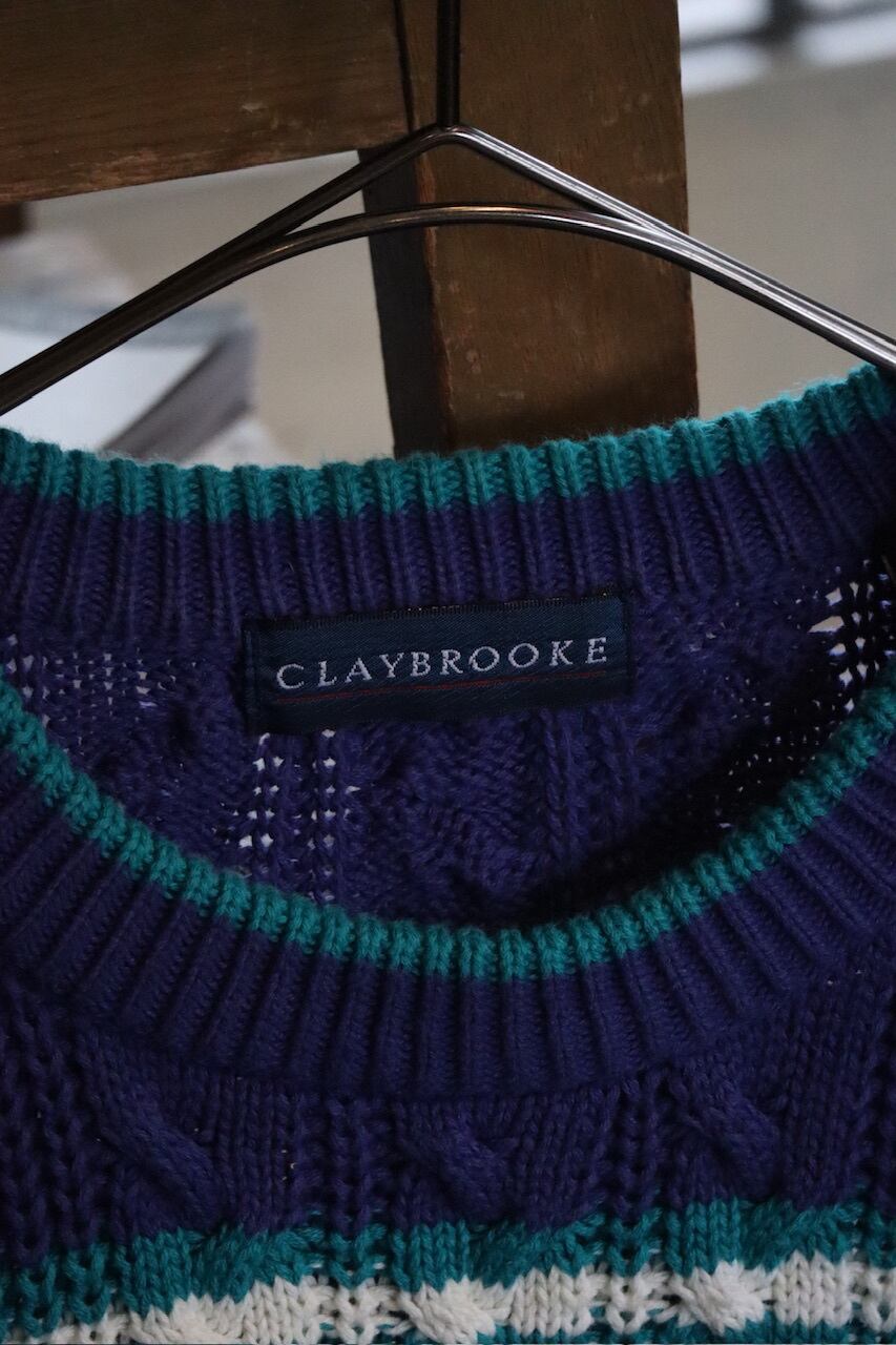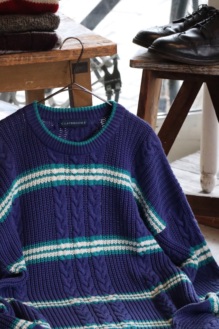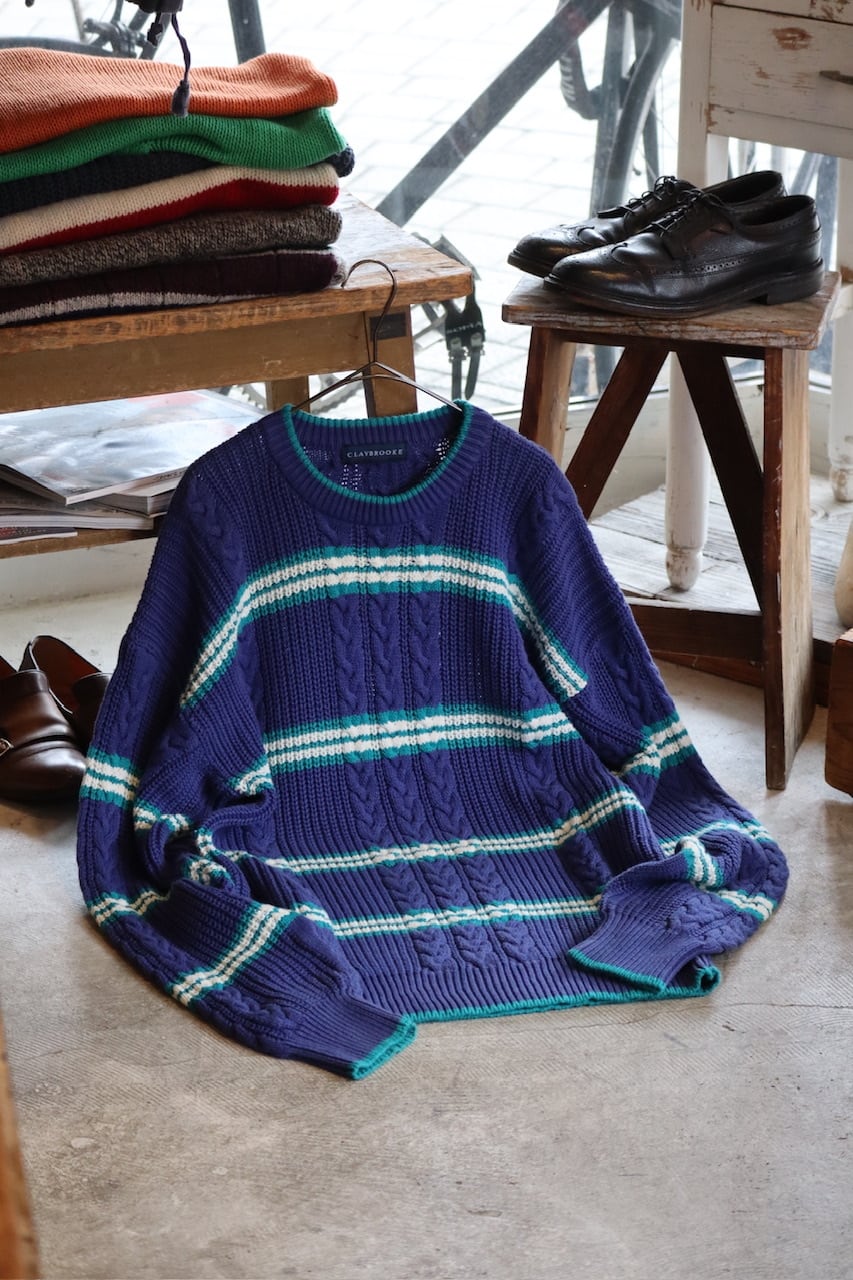 90's CLAYBROOKE border cotton knit sweater