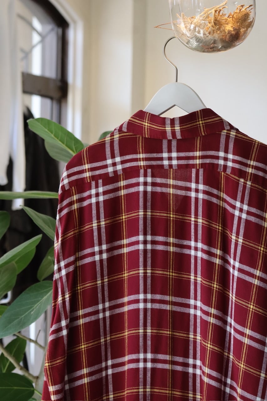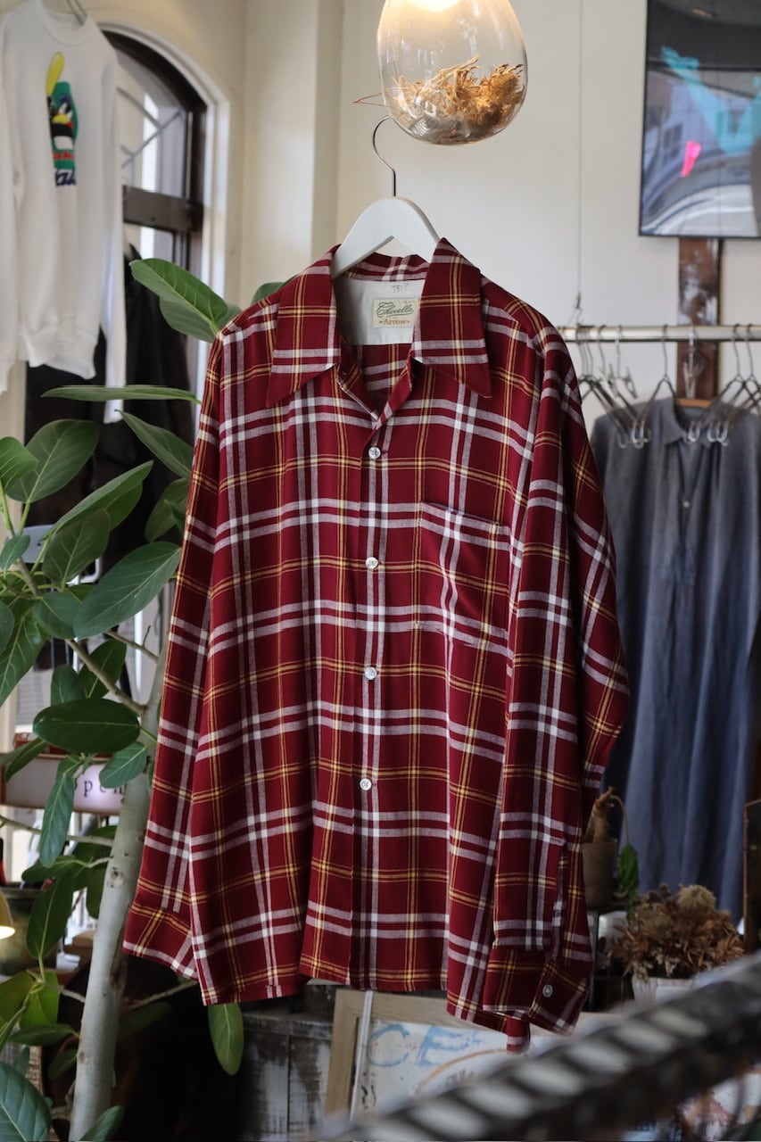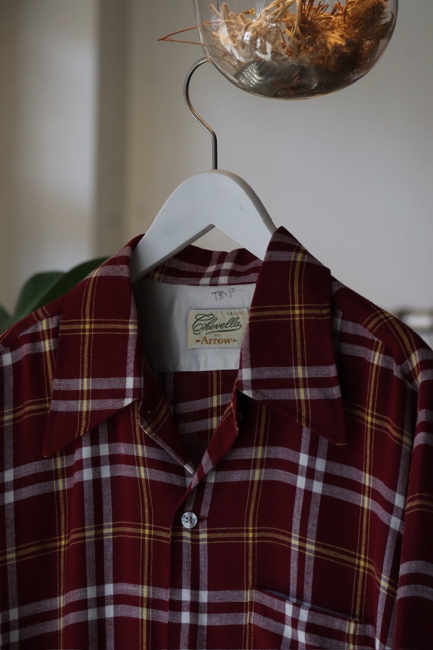 70's Chevella Arrow plaid pattern open collar rayon shirt