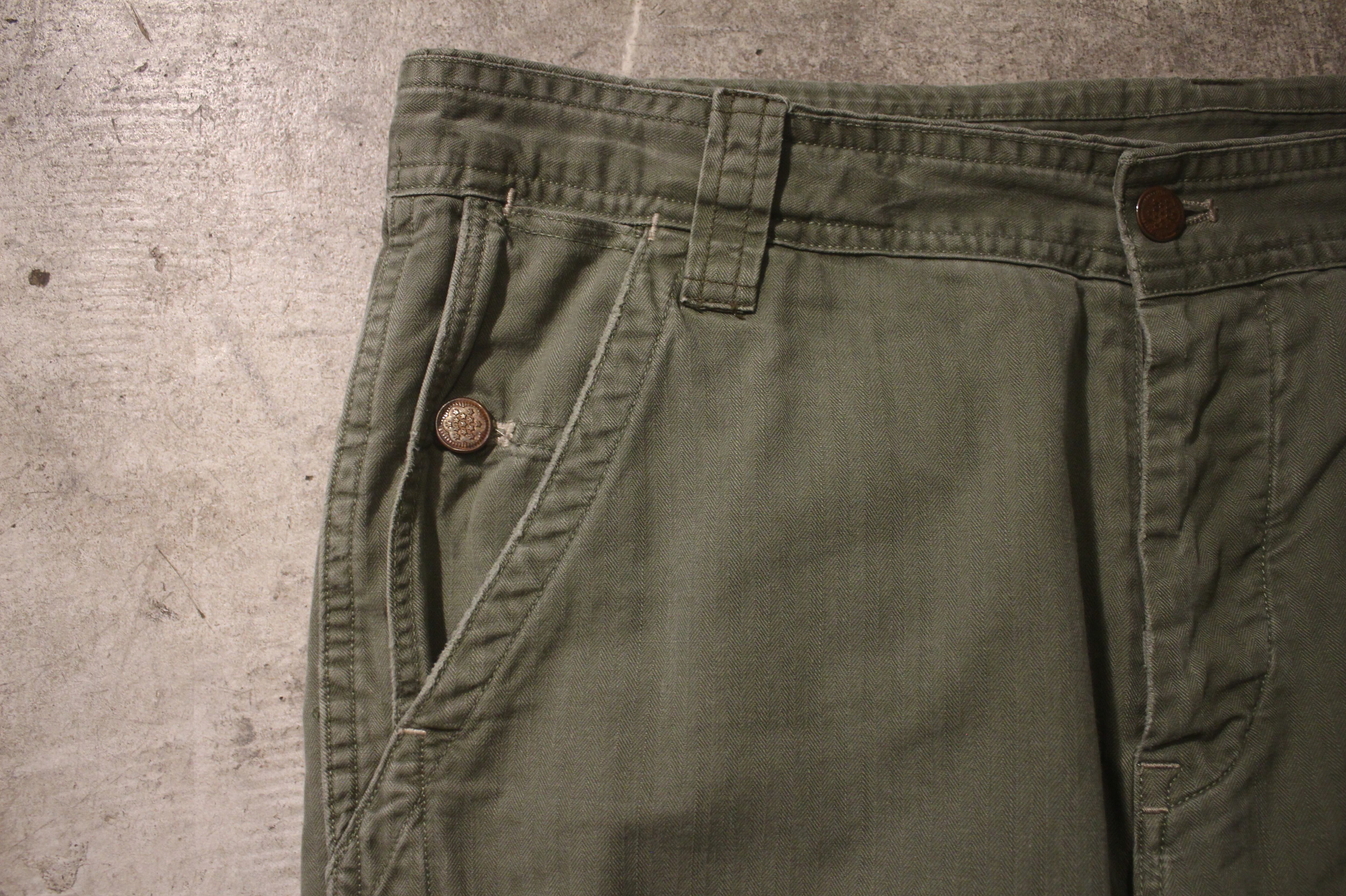 【condition】○(正面ボタンホール付近、両前ポケ、両ケツポケスレ、裾色抜け、アジャスター付近ダメージ