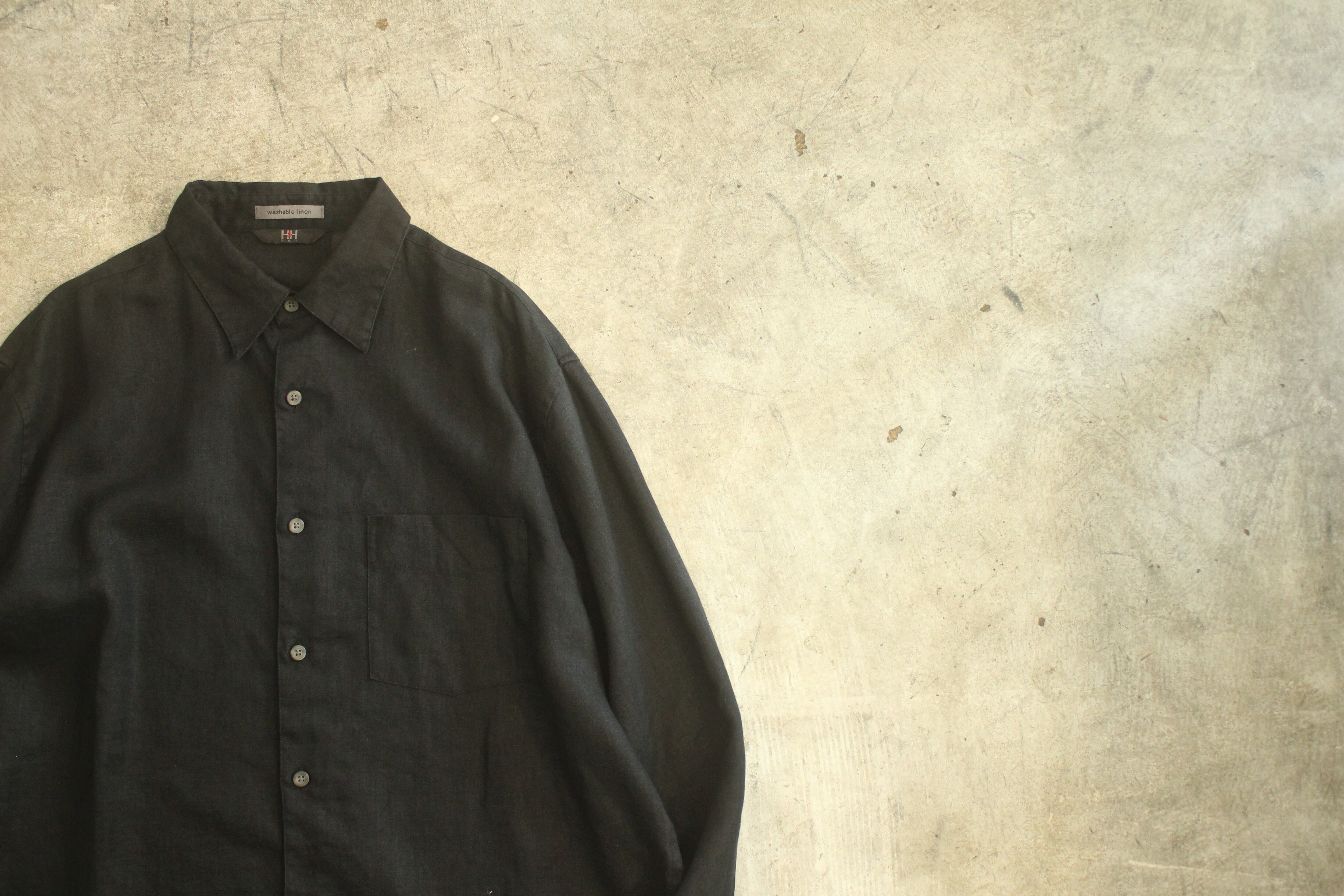 H&H men l/s black linen shirt