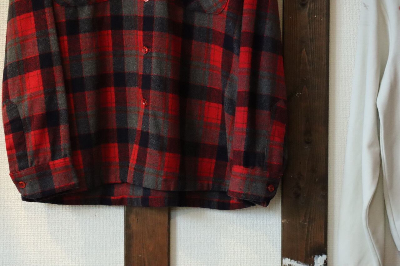 70's PENDLETON loop collar plaid wool shirt